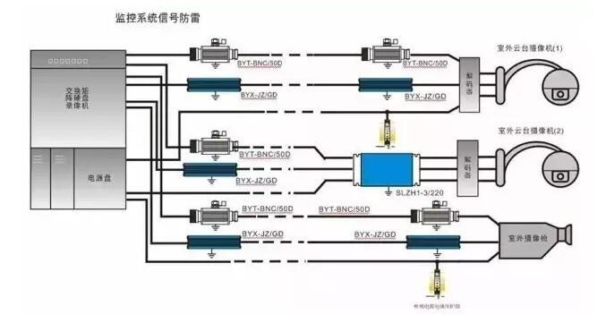 1、同轴电缆传输监控系统:雷电防护重点在于传输电缆的两端线路接口防护及传输电缆自身的保护;
