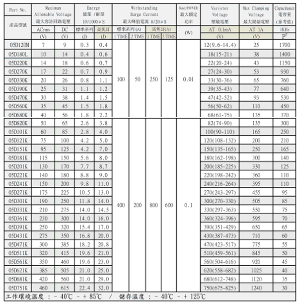05D系列压敏电阻是插件压敏电阻中体积最小的一款