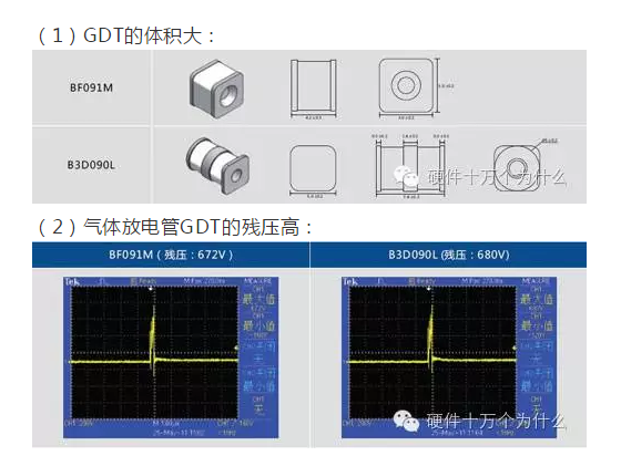 (2)气体放电管GDT的残压高: