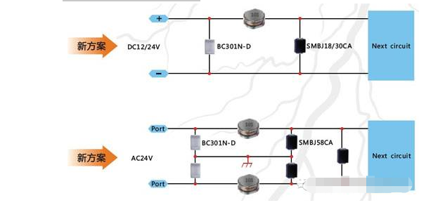 使用常规GDT用于低电压电源端口时,存在上述四点缺陷。新型气体放电管GDT:BC301N-D,可弥补常规气体放电管的不足之处。用于低压12V、24V直流电源防雷设计。