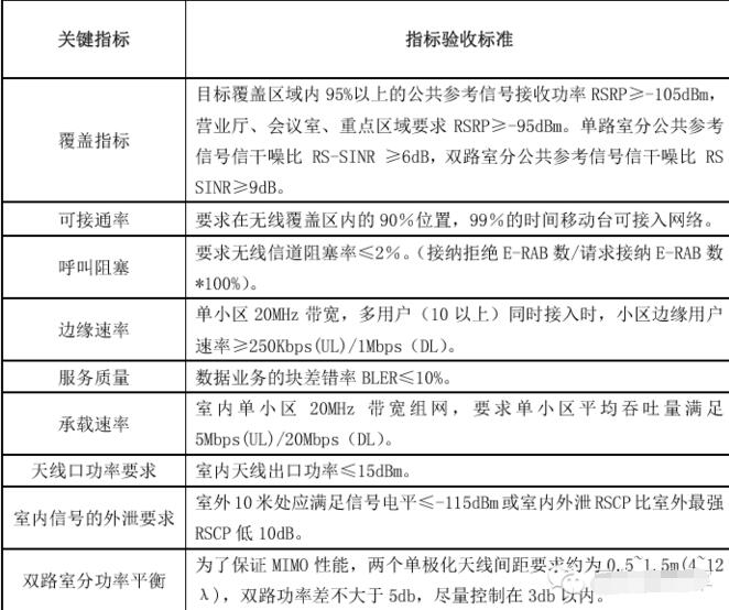 以某地市网优进行室分验收的关键指标为例:
